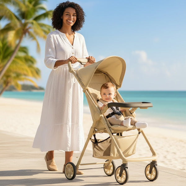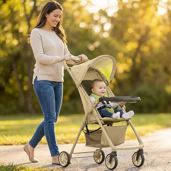 Une jolie poussette au design Ă©lĂ©gant et Ă la couleur beige douce, parfaite pour accompagner les jeux dâimitation de votre enfant đ