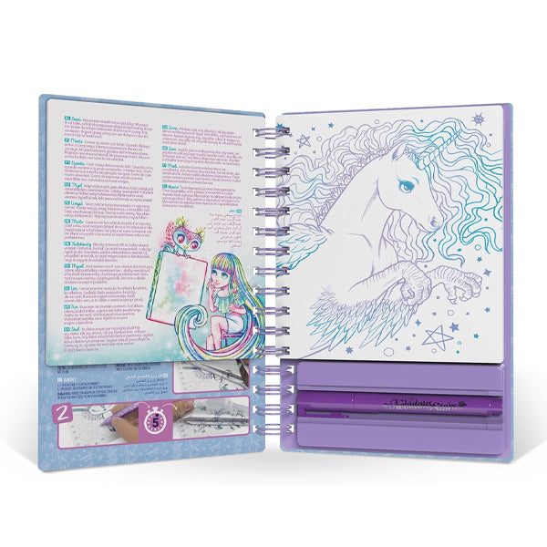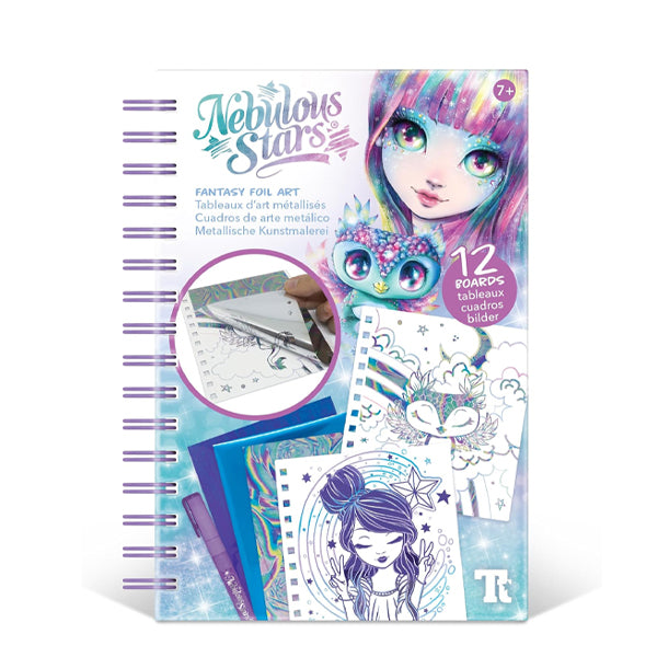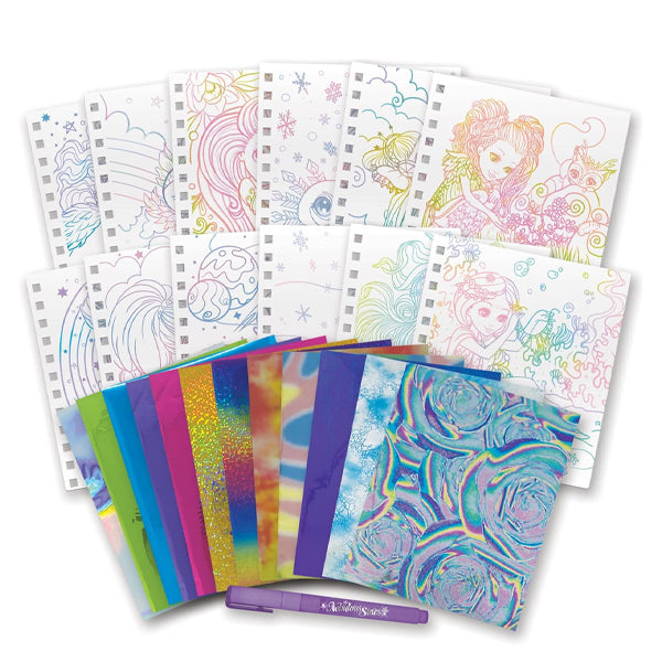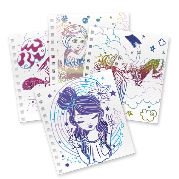 Il suffit de coller les papiers métallisés sur les zones préencollées pour révéler des créations brillantes et magiques.