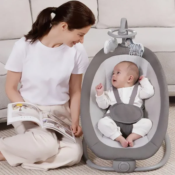 Le siège, recouvert de tissu doux, propose 3 positions d’inclinaison (allongée à semi-assise) pour s’adapter aux moments de repos ou d’éveil. La balancelle peut également être utilisée en berceuse manuelle, idéale pour endormir bébé en douceur.
