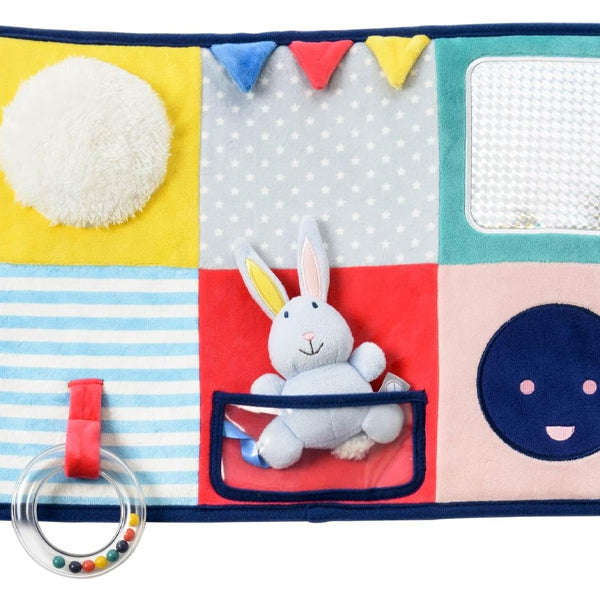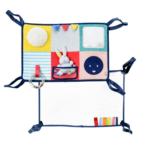 Ce miroir multi-activités pliable stimule les sens de bébé à travers une variété d’activités ludiques. Déplié ou en position chevalet, il offre un univers d’exploration captivant !