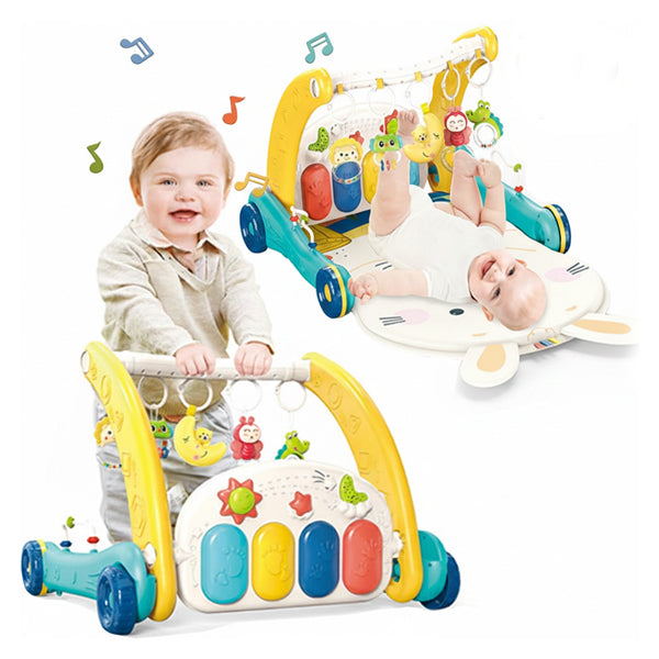 Un jouet multifonctionnel 2 en 1 qui combine tapis de jeu interactif et trotteur sur roues, parfait pour accompagner bébé dans ses premières découvertes et ses premiers pas 👶✨