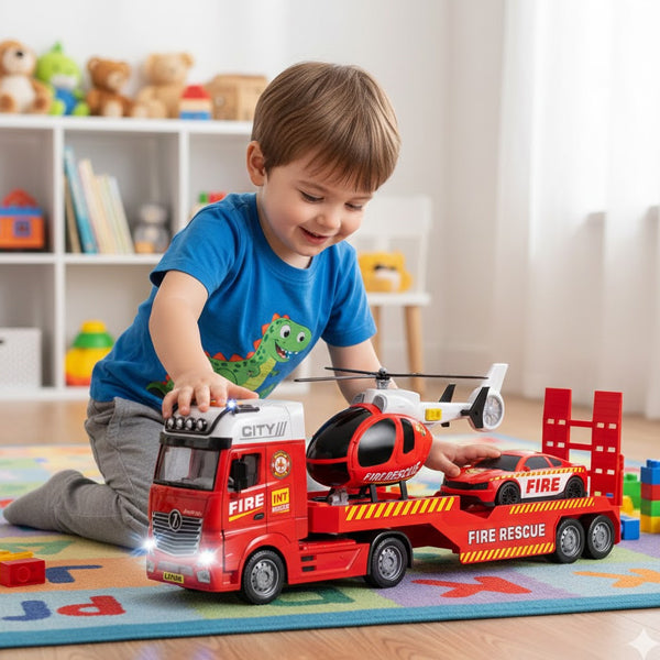 🚒🔥 Camion de pompier avec hélicoptère et voiture 🚁🚗✨