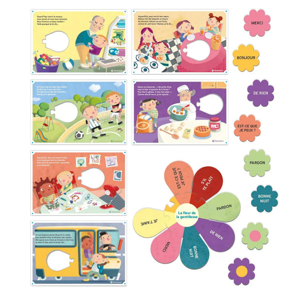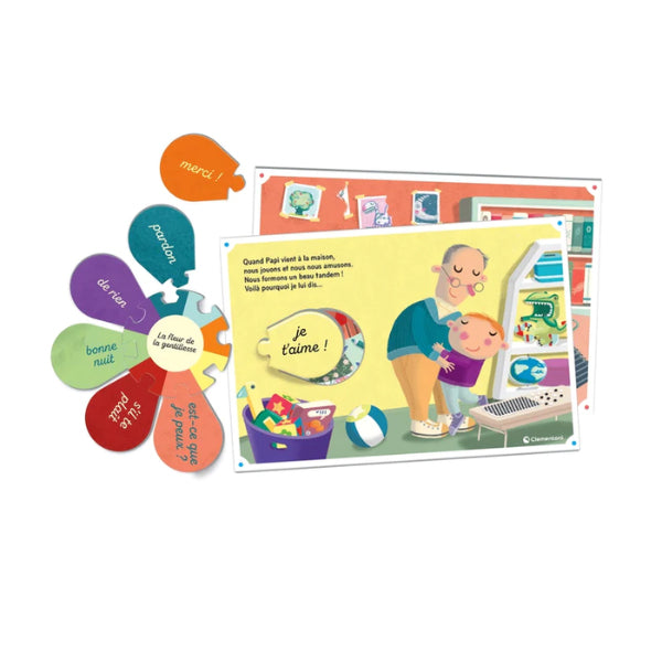 Un jeu éducatif et ludique qui aide les enfants à découvrir les mots magiques (s’il te plaît, merci, pardon, etc.) et à comprendre quand et comment les utiliser dans la vie quotidienne.
