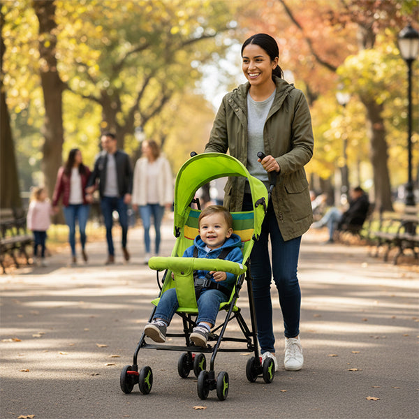C’est un véritable jeu d’enfant de se faufiler en ville avec cette poussette canne Trottine légère et peu encombrante ! Utilisable dès 6 mois et jusqu’à 15 kilos, elle offre un plaisir inégalé à Bébé ! Sa conception simple et pliable,lui permet d’être facilement transportable, son tissu doux avec rayures verticales colorées absorbant la sueur pendant les journées chaudes la rendent pratiques pour abriter les nourrissons pendant les voyages ou les sorties de famille. Elle assure sécurité, stabilité et confort grâce à son système de freinage centralisé à l’arrière, et sa large capote couvrante qui protège votre enfant du soleil.